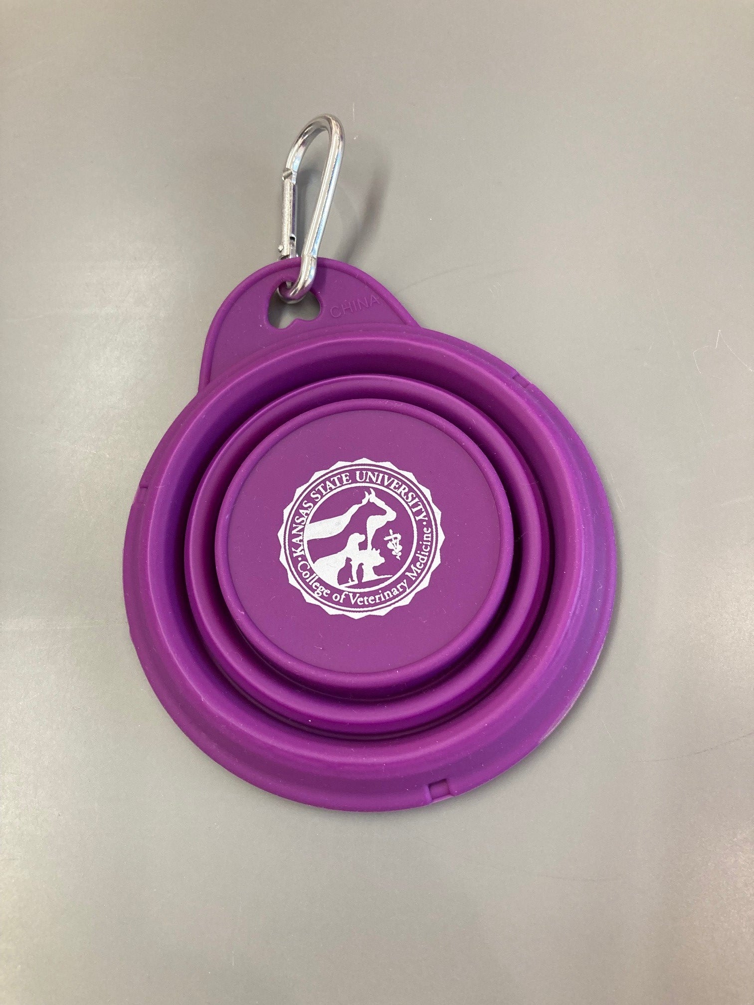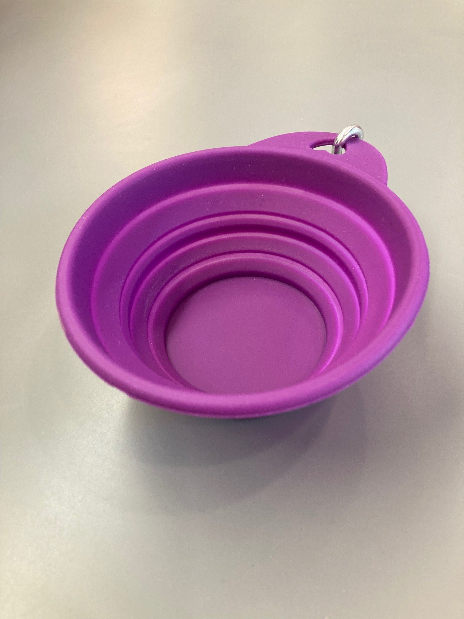 Make sure your pets have easy access to food and water while they're traveling with you. This customized collapsible silicone bowl has an 8 ounce capacity and works well for holding food or water. Includes a clip for attaching to a leash, backpack, or belt buckle for hands-free transport.