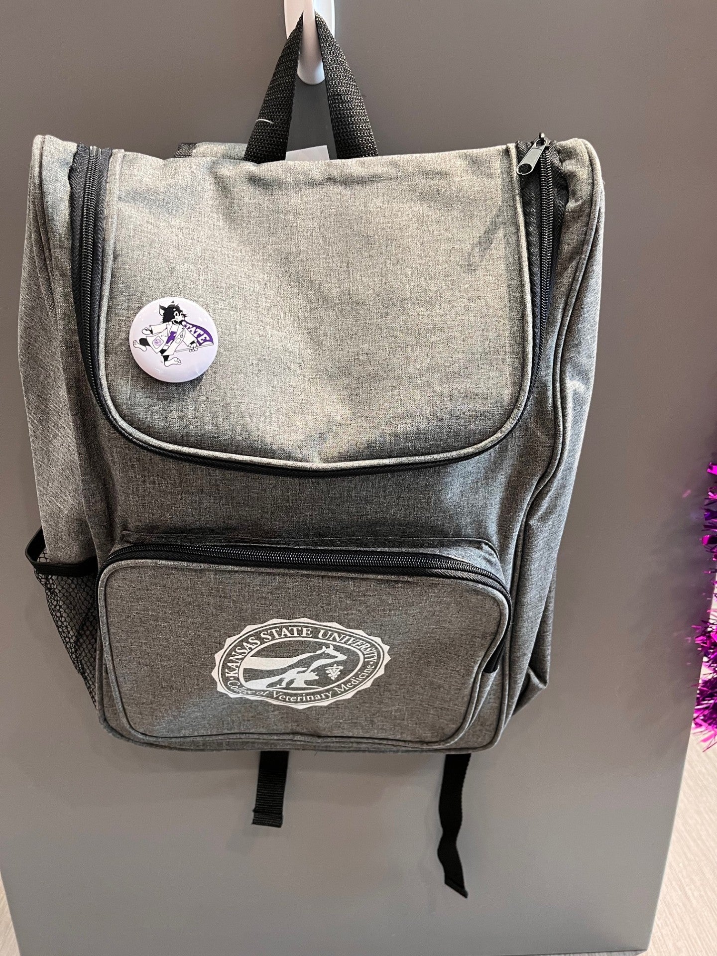Round Button 1.75" with Lab Coat Willie Logo on Lavender background