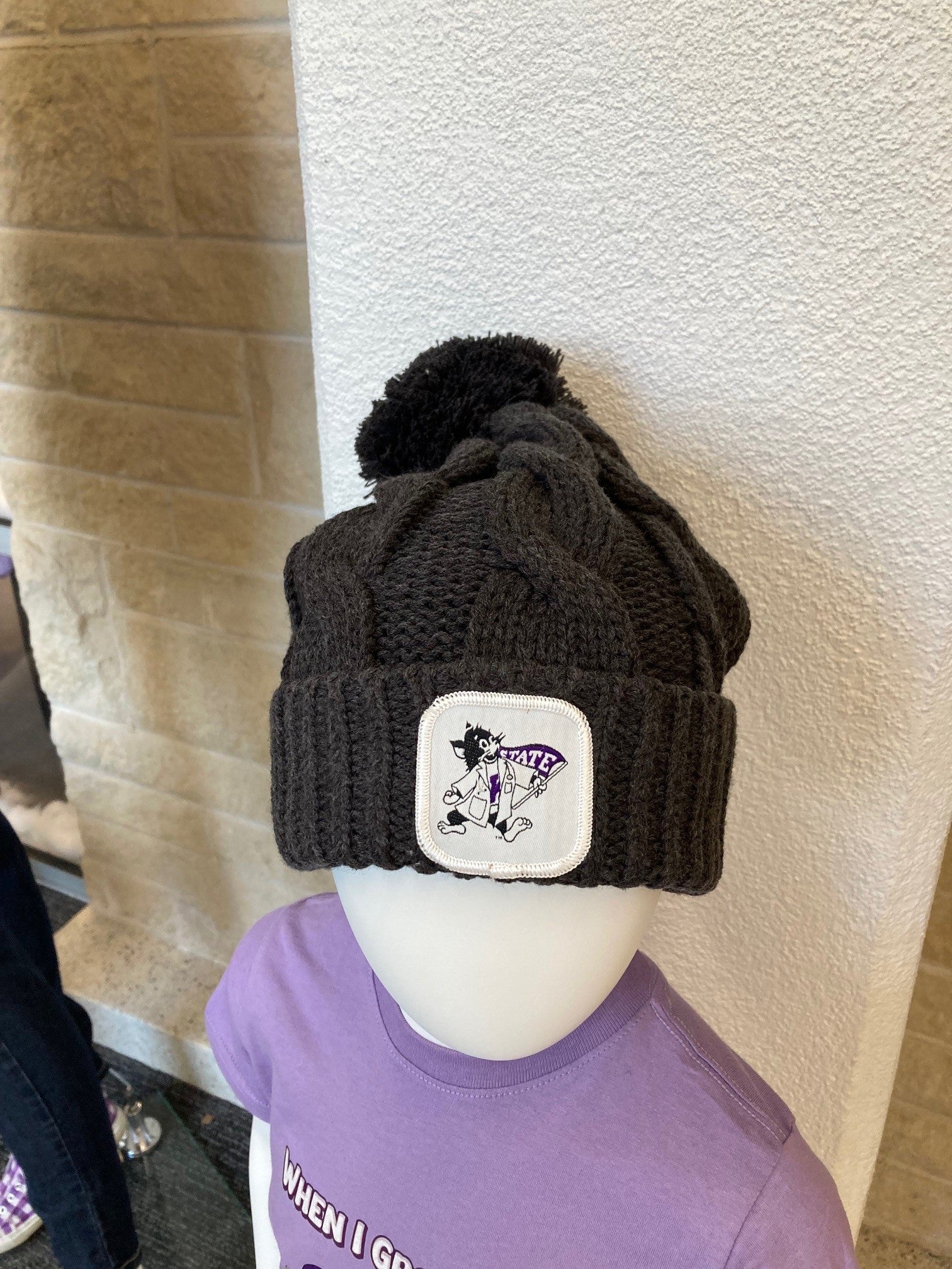 Customized Chunky Twist Knit Beanie with cuff & Pom in Heathered Charcoal with Labcoat Willie patch.