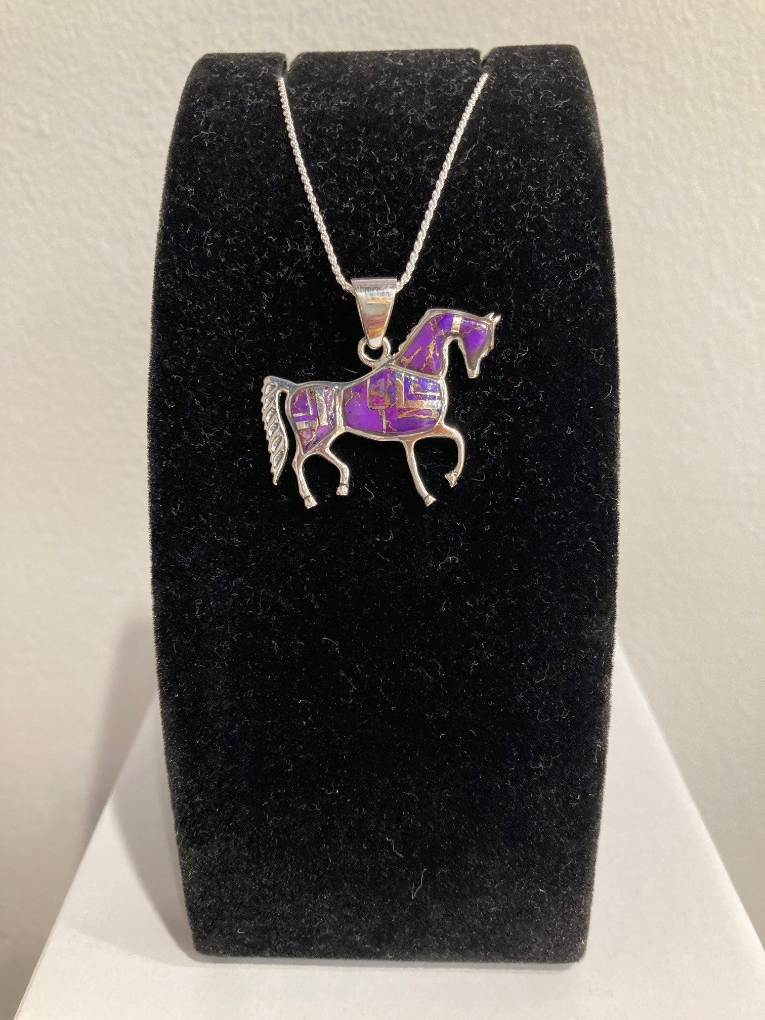 Purple Turquoise Sterling Silver Horse Necklace with 20" chain