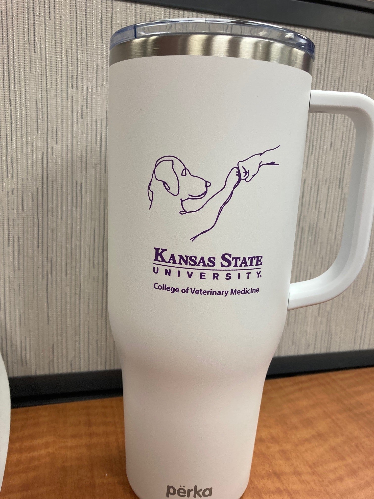 Customized Perka Kempton 40oz Metal Tumbler in White with fist-bumping dog or cat.