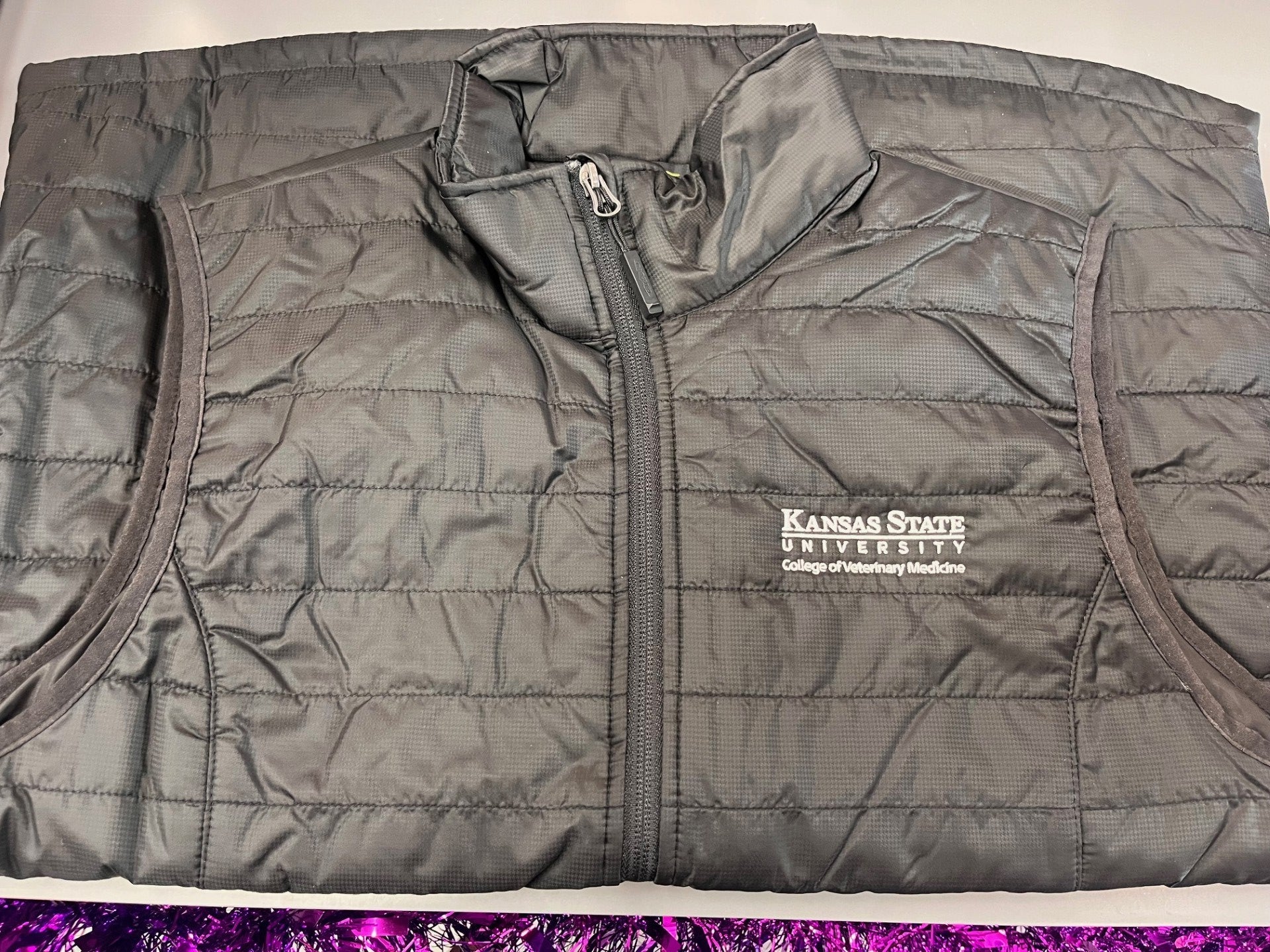 Black Crossland Packable Puffer Vest - Ladies' with white embroidered wordmark logo