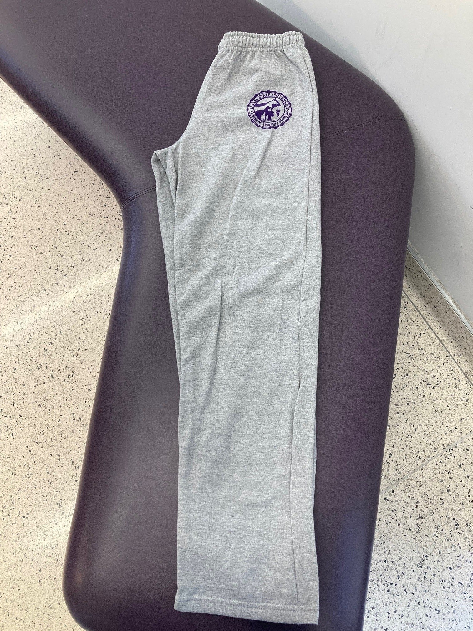 Customized Gildan Heavy Blend Open Bottom Sweatpants in Sports Grey.