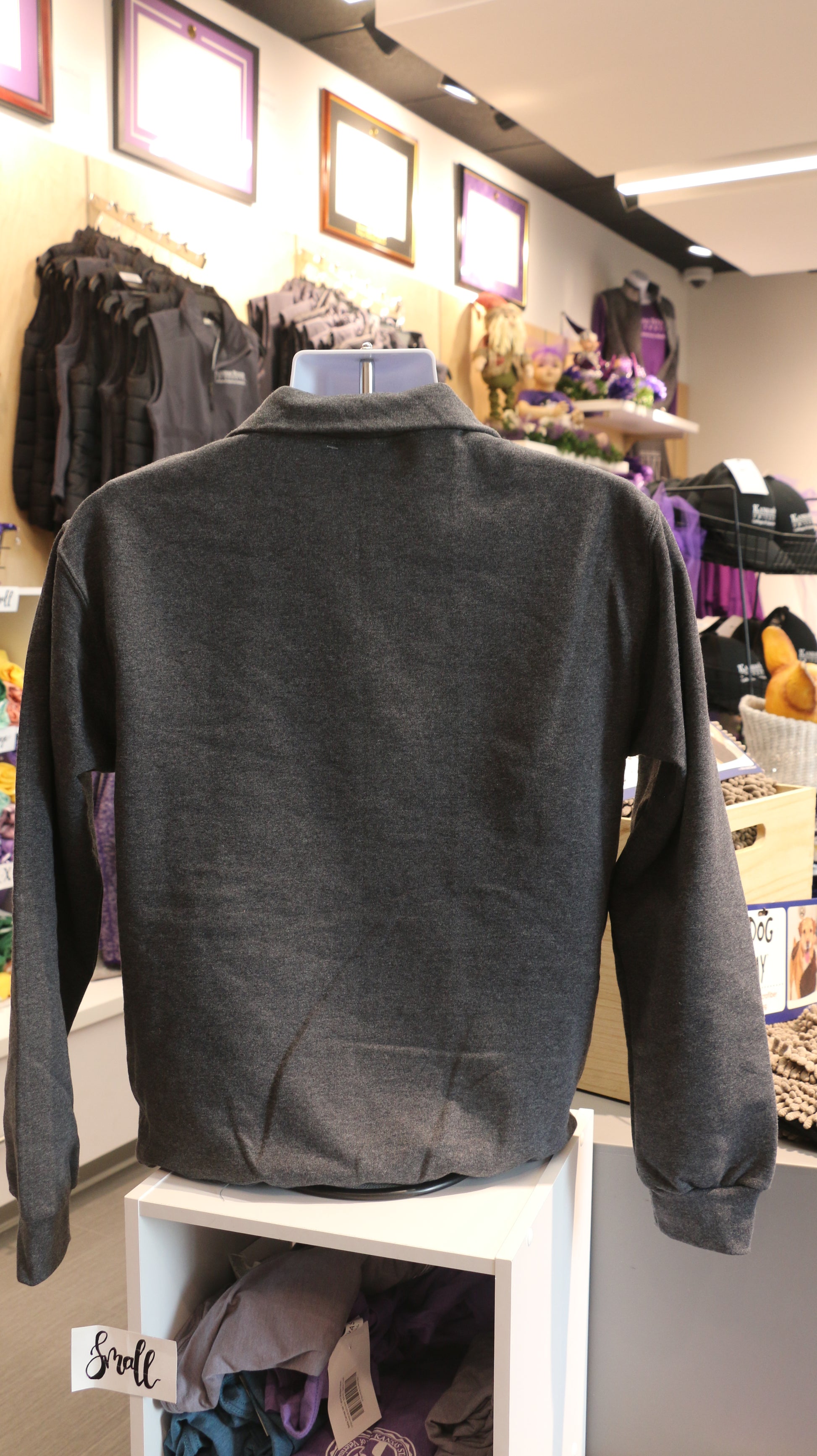 Customized Jerzees Nublend 1/4 Zip Cadet Collar Sweatshirt in Black Heather.