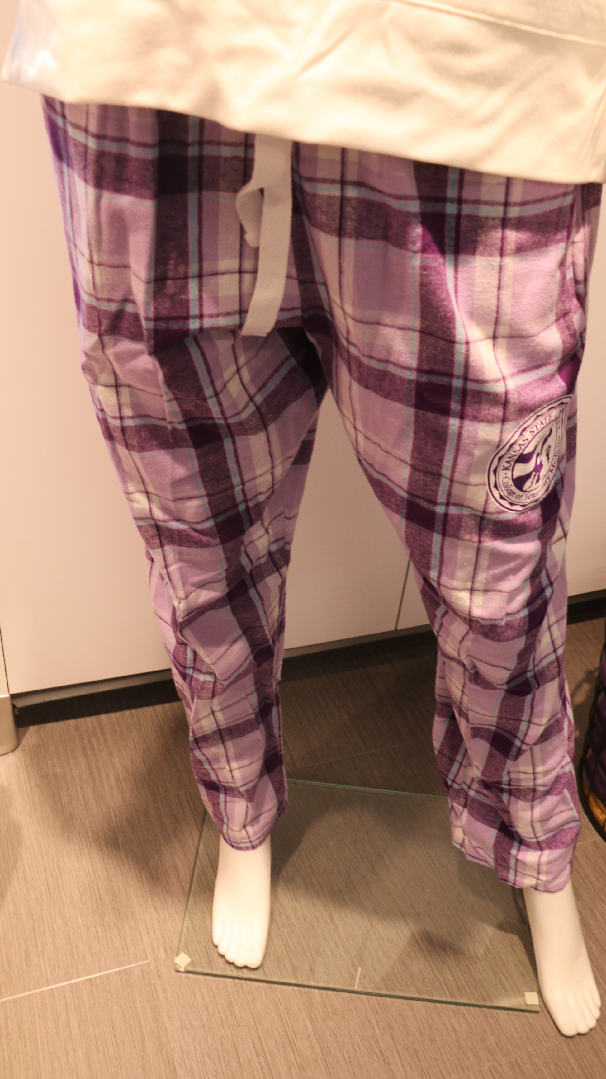 Customized Ladies Haley Flannel Pants with drawstring and pockets in purple.