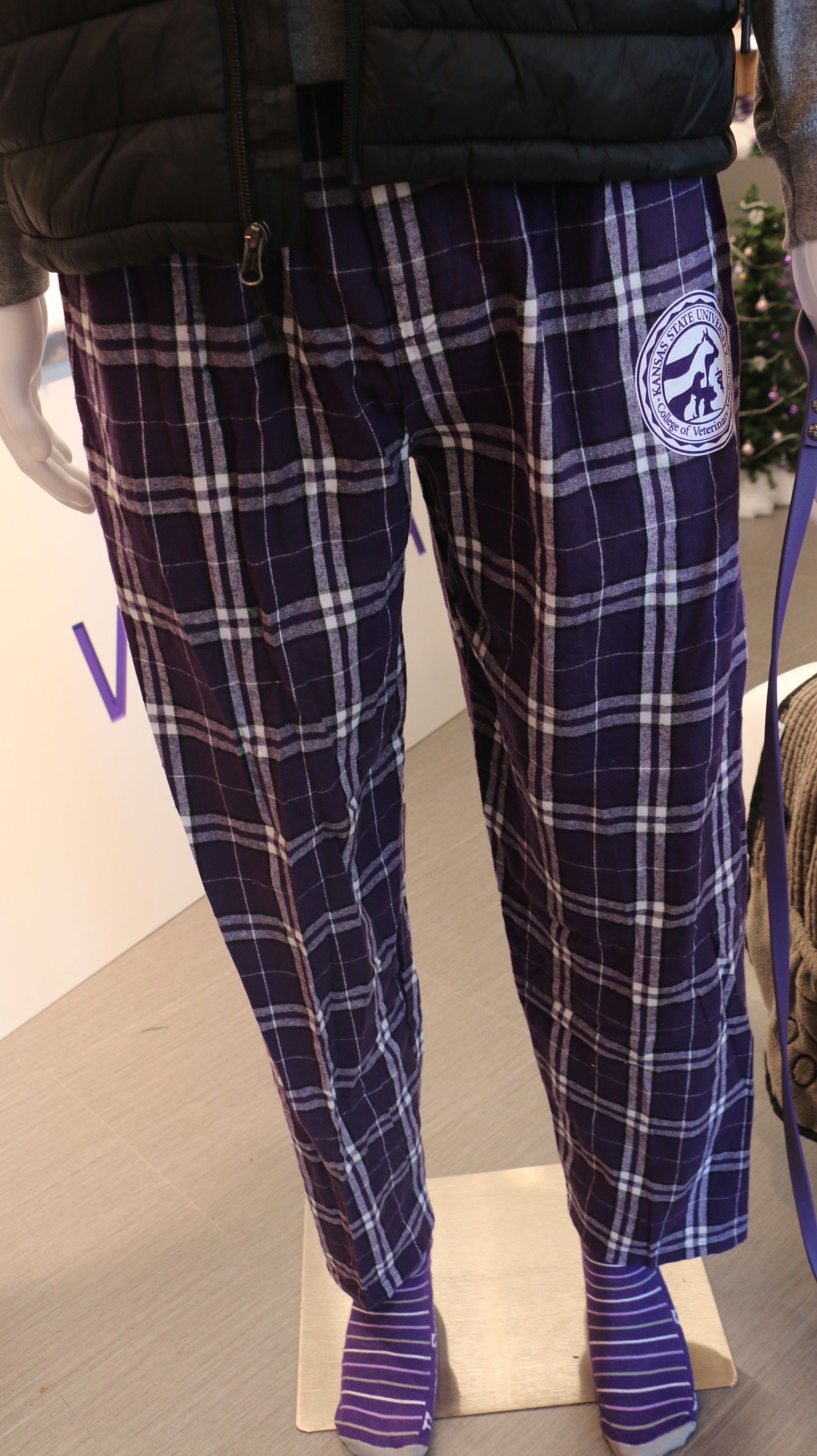 Customized Ladies Haley Flannel Pants with drawstring and pockets in purple.