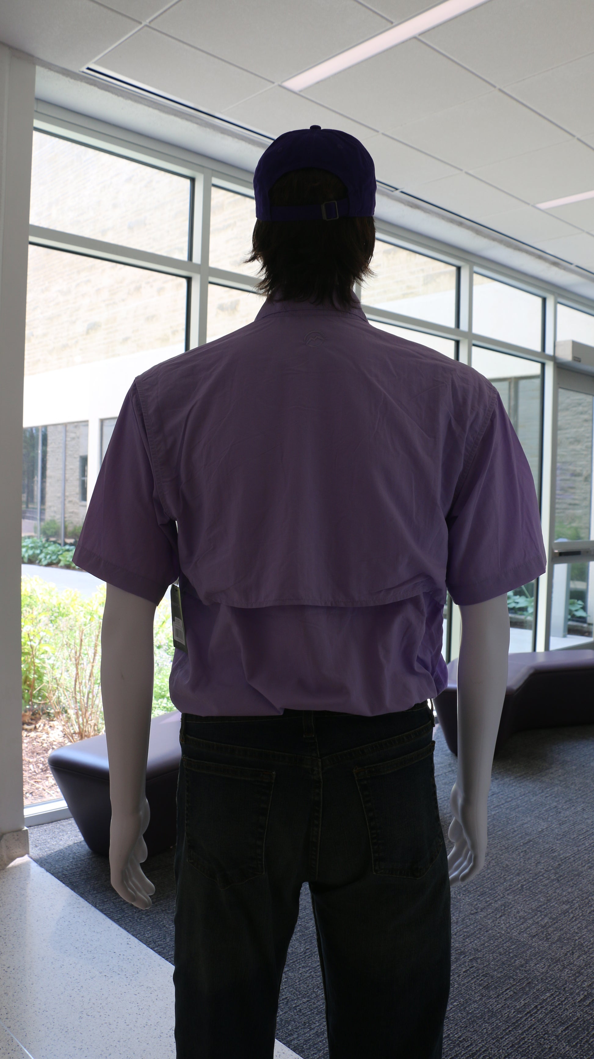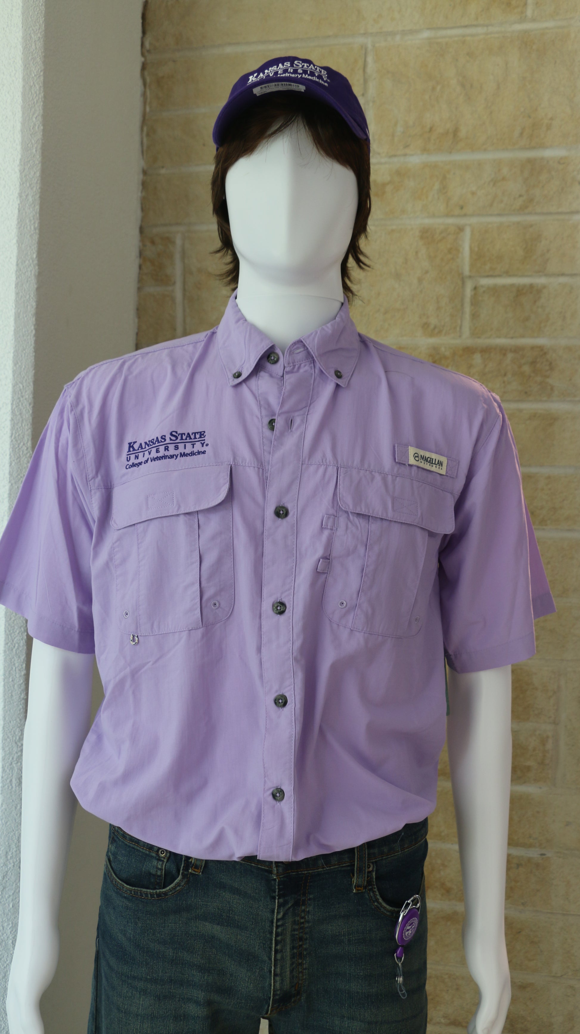Customized Men's Magellan Outdoors Laguna Madre Solid Short Sleeve Fishing Shirt in Purple Rose.  Made of lightweight, sturdy nylon, it offers UPF 30 protection from the sun's harmful rays. Plus, moisture-wicking fabric technology helps keep you cool and dry on especially hot days.