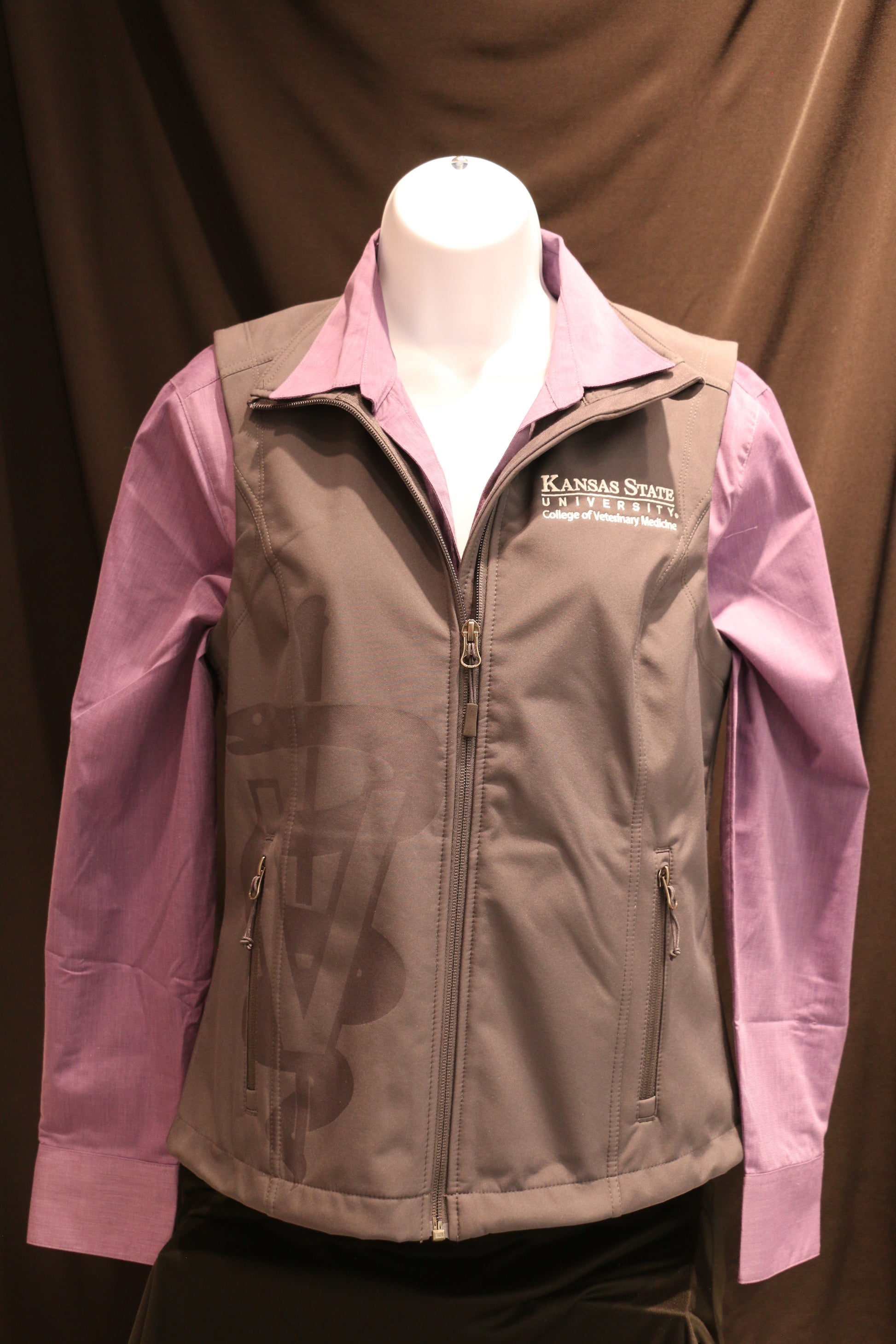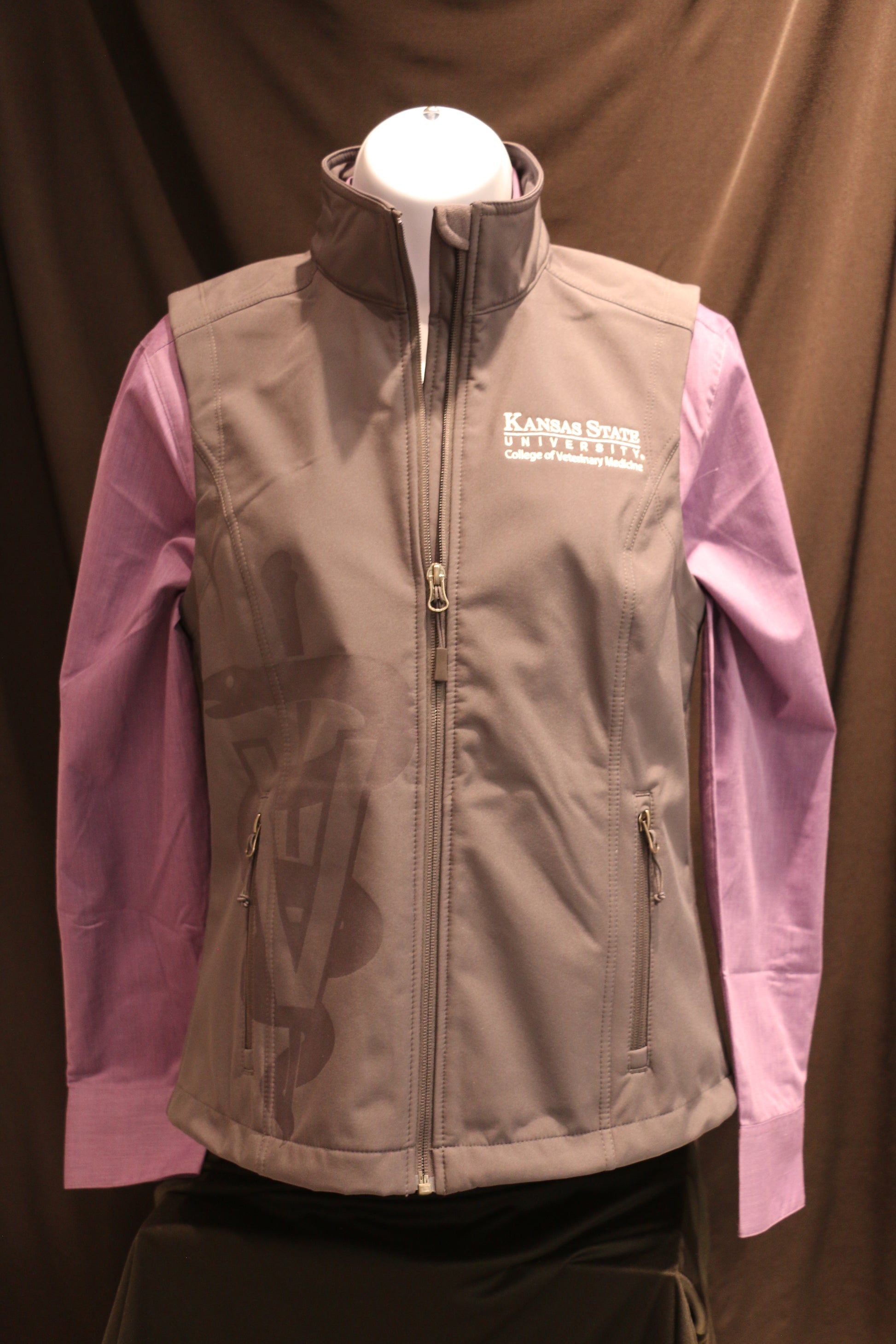 Customized Port Authority light weight vest with caduceus laser etching.  Side zip pockets. Grey.