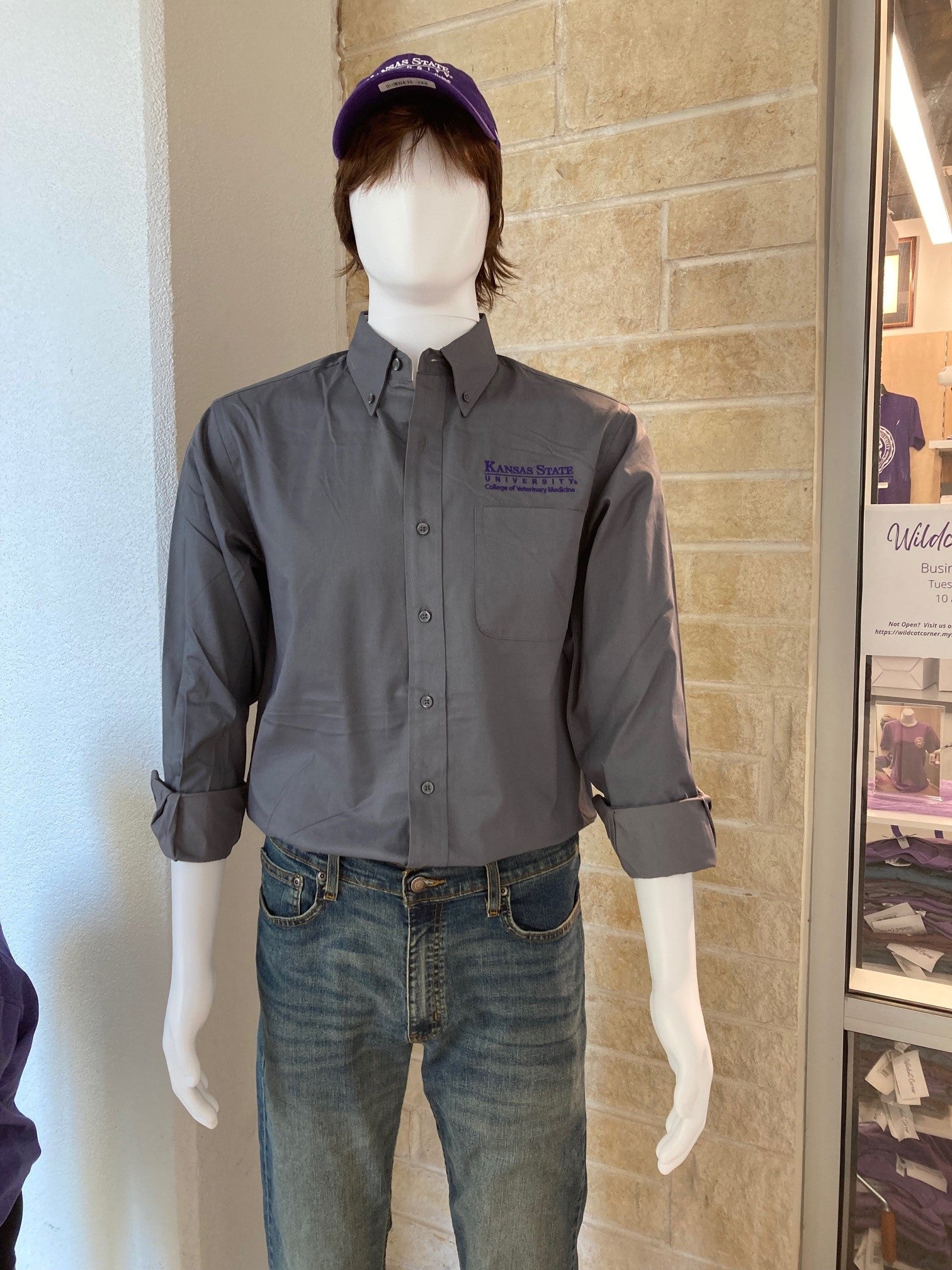 Customized Port Authority Long Sleeve Easy Care Dress Shirt.  Available in Purple or Steel Grey.