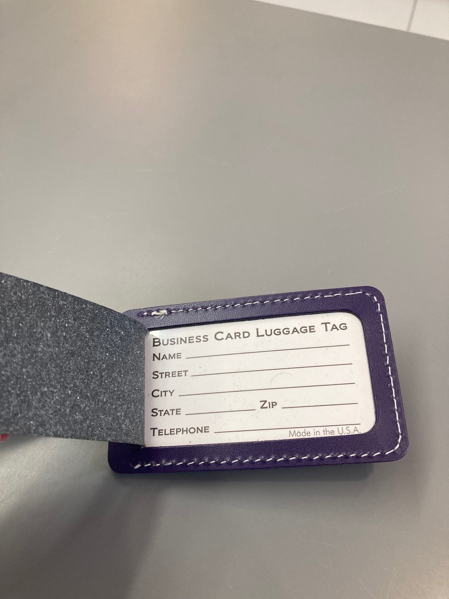 Travel in style and be able to identify your luggage with this leather luggage tag.