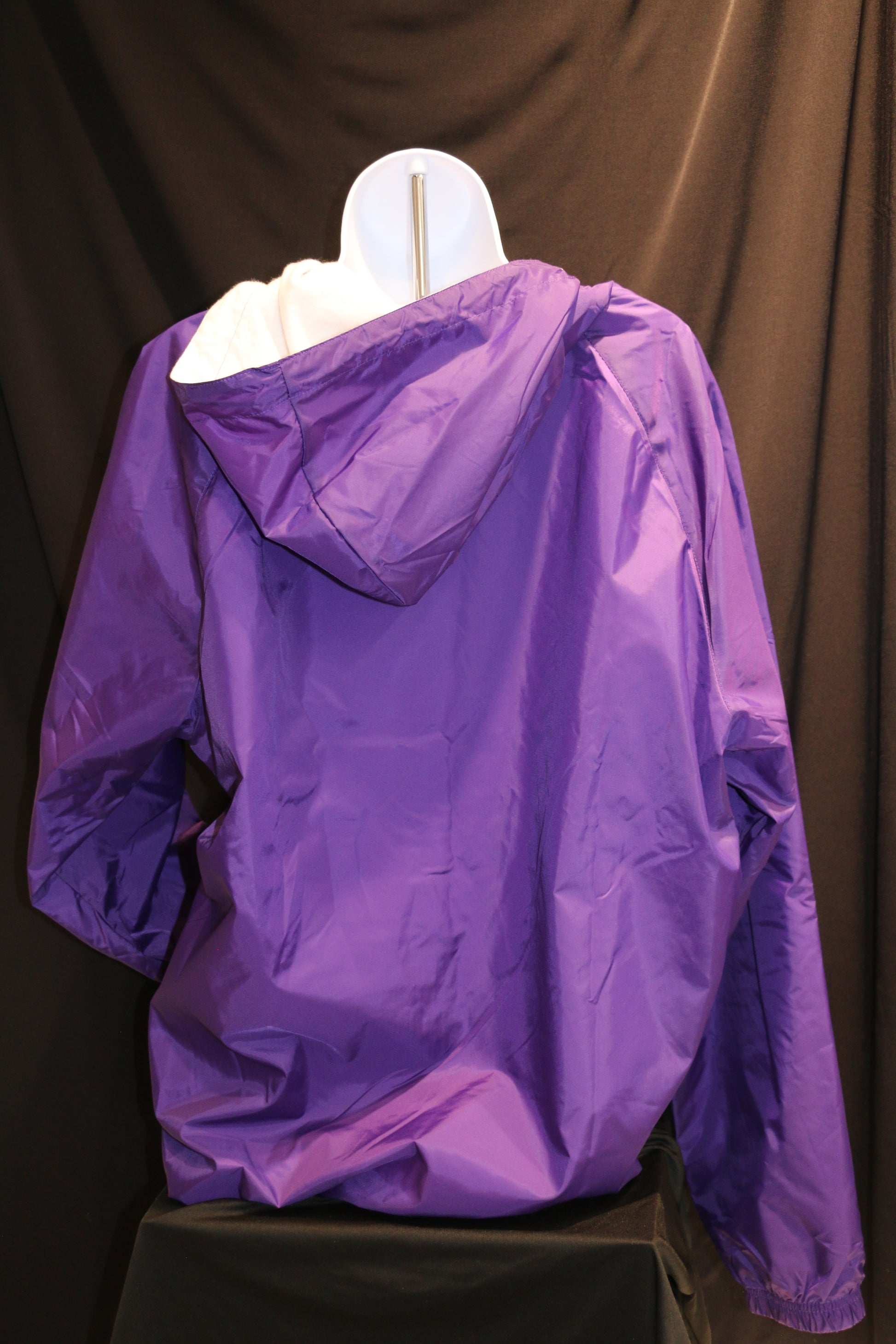 Stay dry with this hooded Charles River rain jacket with side pockets and front pouch.